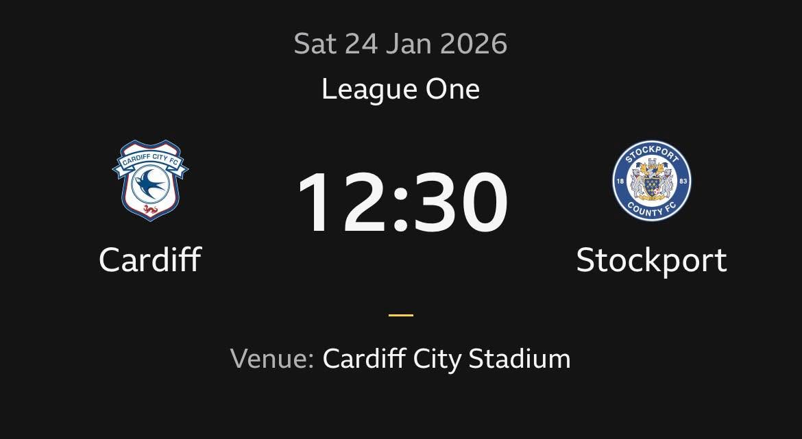 Kick off your weekend with live action as Stockport County face Cardiff City at 12:30.