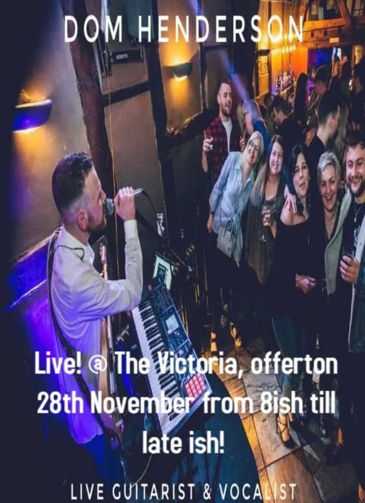 π€ Live Music This Friday! Get ready for an unforgettable night filled with energy, rhythm, and good vibes. Join us as the talented Dom Henderson take the stage and bring the weekend to life. π Friday 29th November π The Victoria β° 8pm β¨ No better way to kick off the weekend than with great music, friends, and atmosphere. Donβt miss out β mark your calendars now! π Tag your crew and letβs make it a night to remember